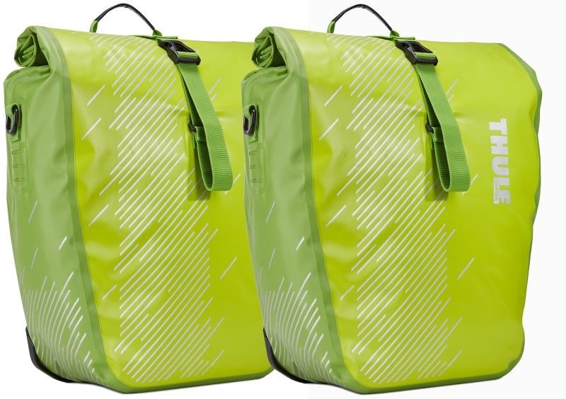 Rigtig fedt taskesæt fra Thule. Man folder det øverste før man lukker tasken helt som gør at tasken er vandtæt og lukkes i den størrelse som man gerne vil have. Tasken kommer i 3 farver. Sort. Blå og den populære trafiksikre neon gule farve! Fås både i 48 liter og 28 liter.